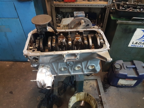 Έπειτα λύνονται τα επιμέρους εξαρτήματα του κινητήρα: στρόφαλος, πιστόνια, μπιέλες και μαζί με την κεφαλή στέλνονται σε ρεκτιφίε με το οποίο συνεργαζόμαστε. Το ρεκτιφιέ έχει πολύ σημαντικό ρόλο στην διαδικασία της ανακατασκευής του κινητήρα καθώς γίνεται έλεγχος ρηγμάτων, πλάνισμα και φρεζάρισμα κεφαλής, λείανση στροφάλου, εφαρμογή ελατηρίων πιστονιών, τοποθέτηση οδηγών κεφαλής. Αφού γίνεται η παραλαβή του κινητήρα και της κεφαλής από το ρεκτιφίε προχωράμε στην  εφαρμογή των γνήσιων ανταλλακτικών Lada που πρέπει να τοποθετήσουμε όπως φλάντζες  μέταλα μπιέλας και βάσεως, θρος στροφάλου και εκκεντροφόρου, τσιμουχάκια βαλβίδων, αντλία νερού και λαδιού, καδένα και ρεγουλατόρο καδένας όσων εξαρτημάτων έχουν φθαρεί και η χρήση τους είναι ακατάλληλη για την  σωστή λειτουργία του κινητήρα Lada.